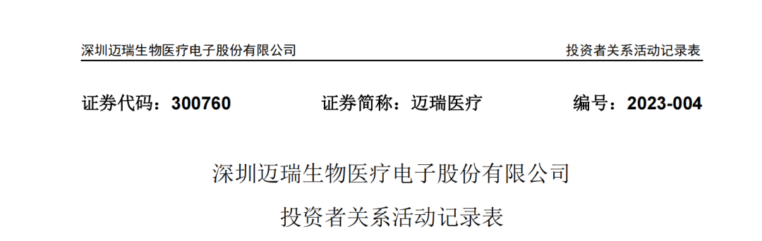 7月2日,迈瑞医疗发布了医疗器械创新网活动记录表,其中就很多投资者关注的问题进行了回复: